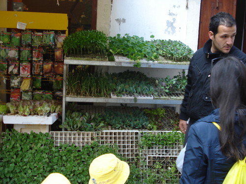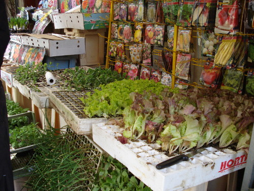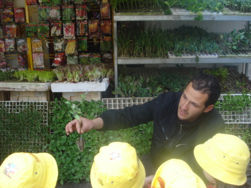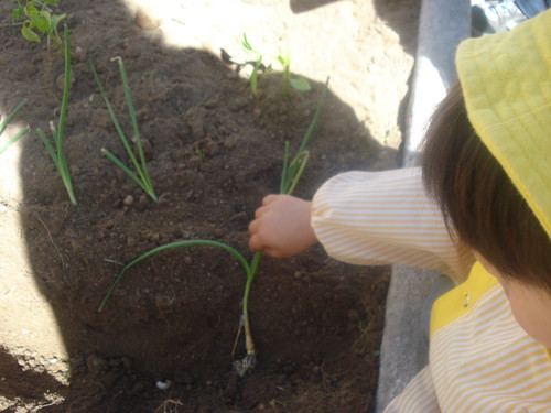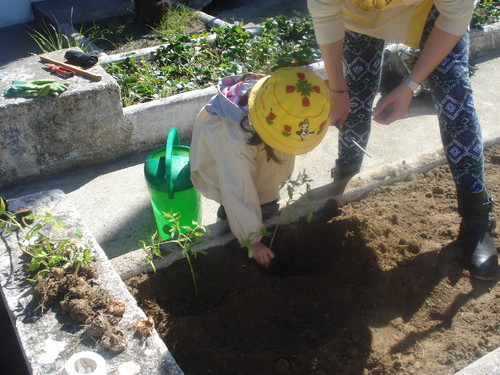 Plantámos os rebentos dos tomates, dos pimentos, dos pepinos, das cebolas e das alfaces.