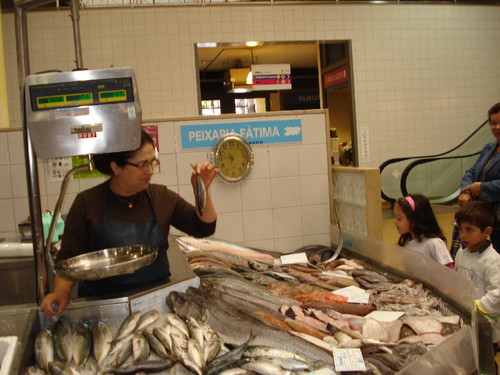 A D. Fátima mostrou-nos os diversos tipos de peixe que tinha para vender.