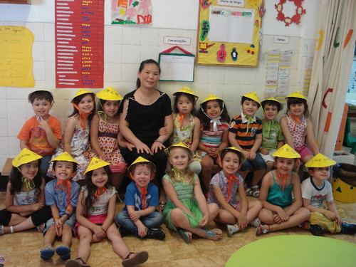 Primeiro o Zé pôs chocolate nos nossos triângulos de massa. Uhmm!