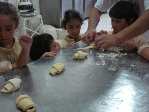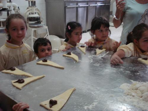 A seguir os pães foram para o forno e fizémos croissants de chocolate.