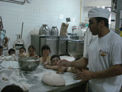 Depois de andarmos a fazer entrevistas para o projeto das Profissões que trabalham à noite (depois comunicamos aqui) pedimos para fazer o pão, na padaria que nos fornece o pão aqui para a escola: a Padaria Mimosa.