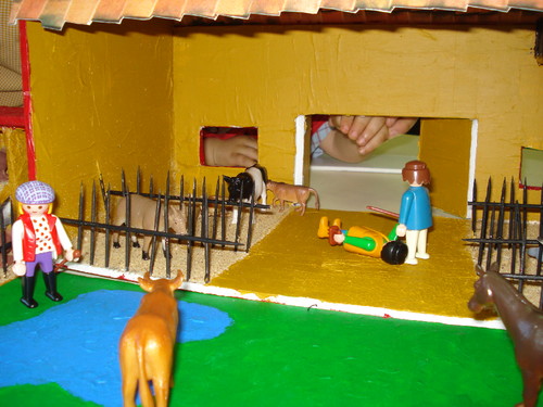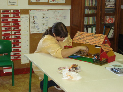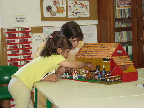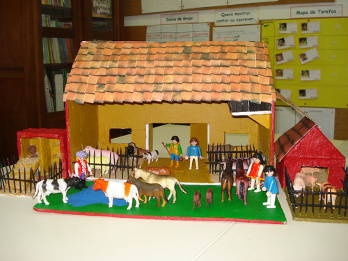 Depois, dizendo o seu nome e imitando o seu som, cada um foi pô-lo no seu lugar na quinta: no galinheiro, na pocilga ou dentro do estábulo.
