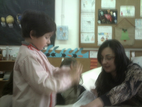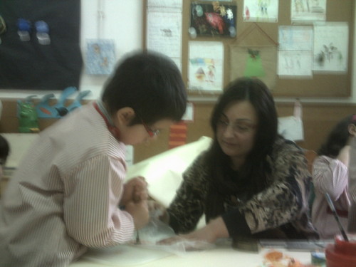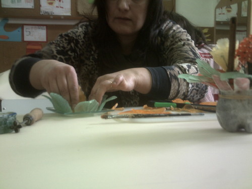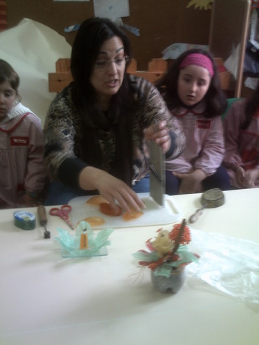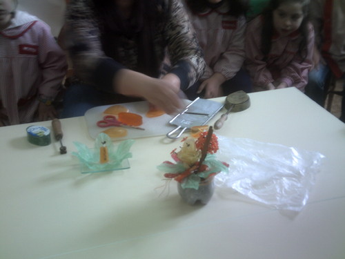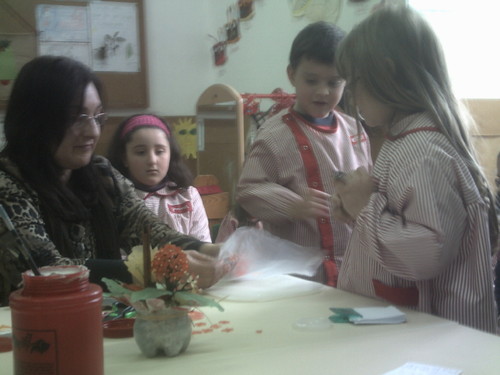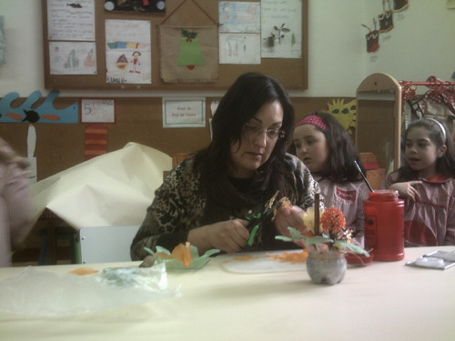 A Paula veio hoje à nossa sala fazer flores com sabonetes.